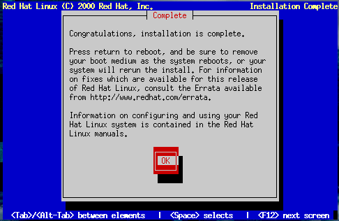 Congratulations! Your Red Hat Linux installation is complete!