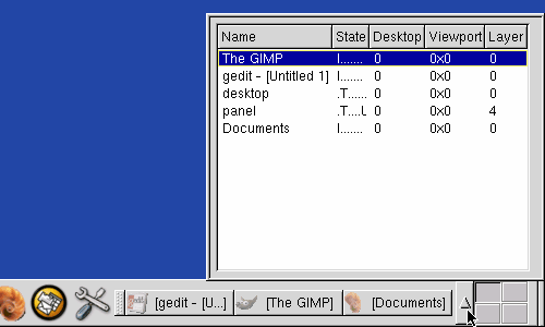 Pick a window from the window list menu by clicking on the thin pop-up menu located between the desktop guide and the tasklist.