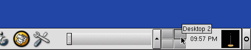 You can easily switch between virtual desktops with a click on one of the desktop buttons in the panel.