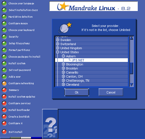 Select your particular ISP from the list, or choose "Unlisted" to manually complete the account information.