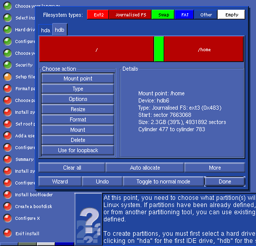 DiskDrake, the graphical disk partitioner, provides an easy way to create Linux partitions. See these pages for an example of partitioning with DiskDrake.