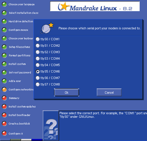 port the modem is using.