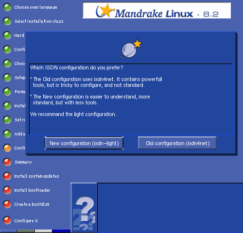 Two ISDN configurations are available to choose from -- "isdn-light" is the preferred method, and "isdn4net" is an alternate method.