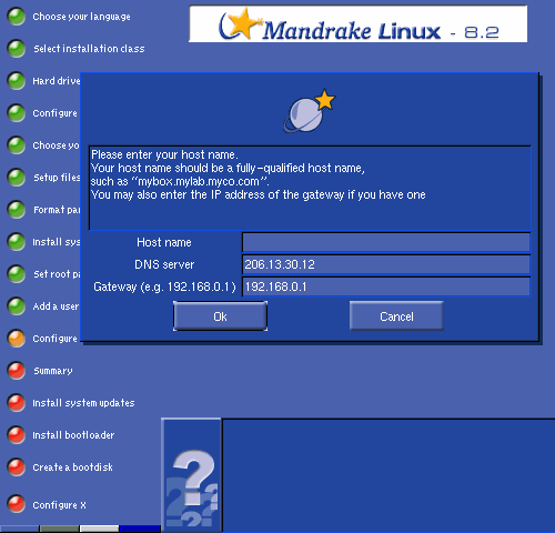 Enter your fully-qualified domain name, DNS server and gateway settings (if any).