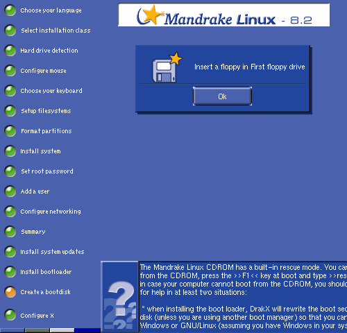 Insert a floppy and press "OK" to create the boot disk.