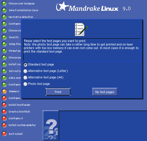 You can then print test pages to make sure the printer is configured properly before moving on.