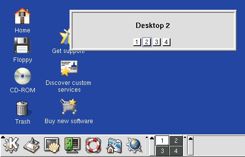 Also, the Ctrl-F1...F8 keys will send you to the corresponding desktop immediately, and Ctrl-Tab will cycle through the desktops.