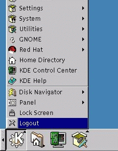 Similarly, in KDE, you can log out from the menu button on the Panel (see Figure 1-9).