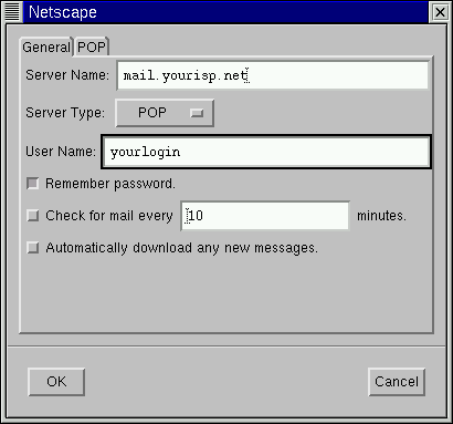 • Automatically download any new messages -- When you check this option, Communicator will automatically download new mail from your ISP's mail server and place it in your Inbox.