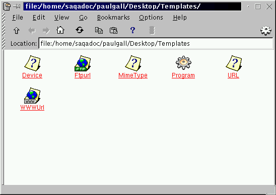 Mime Type -- Creates a link to an application or text file. (MIME means Multipurpose Internet Mail Extensions; they're used to describe different data so that the operating system knows how to work with it when that data is selected.) You won't require this template often, since many MIME types are already available with KDE.